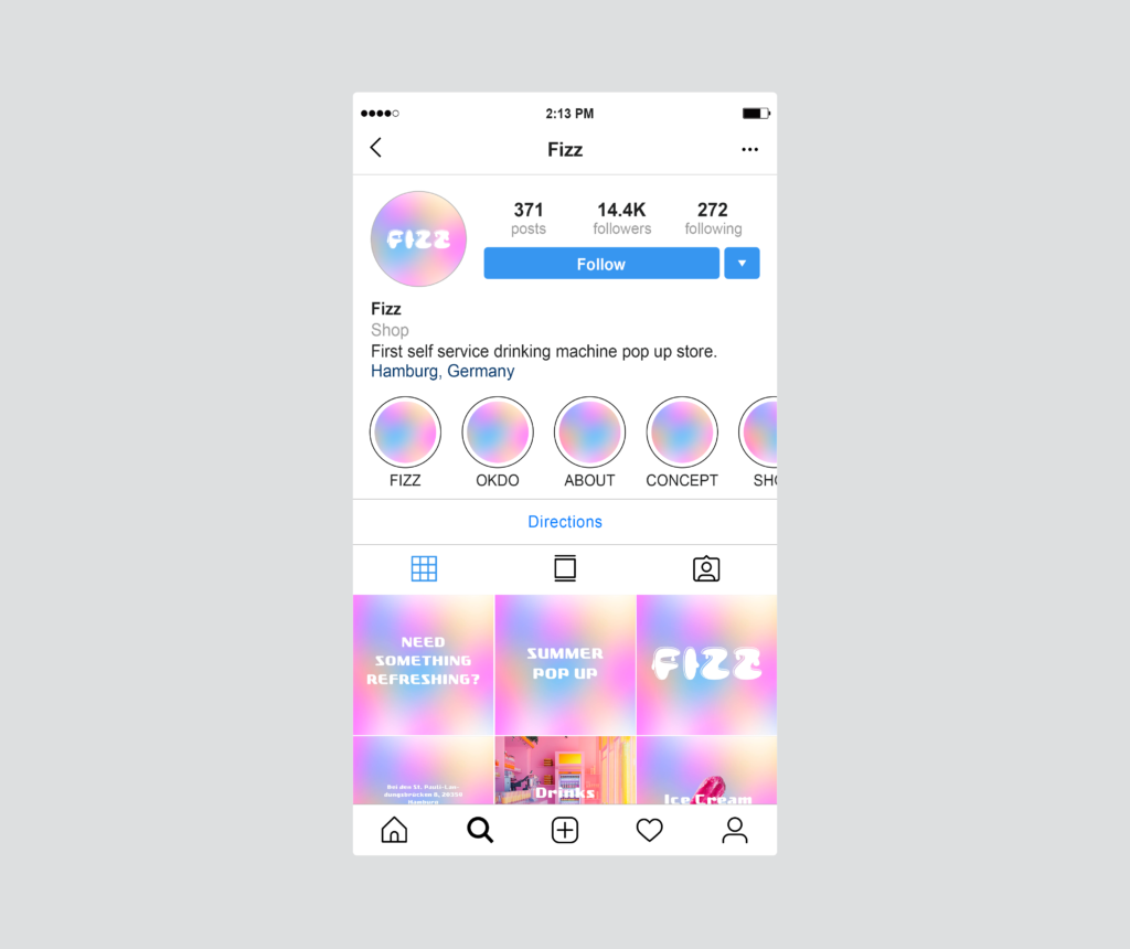 Fizz is the name of a fictional summer pop-up store at the Landungsbrücken in Hamburg. The store offers self-service ice cream and beverage stations. For this project, I developed the entire concept, including social media and web design. Following the claim ‘Need something refreshing?’ the store is designed to encourage visitors to quickly create a cool, refreshing drink, both alcoholic and non-alcoholic, during the summer.